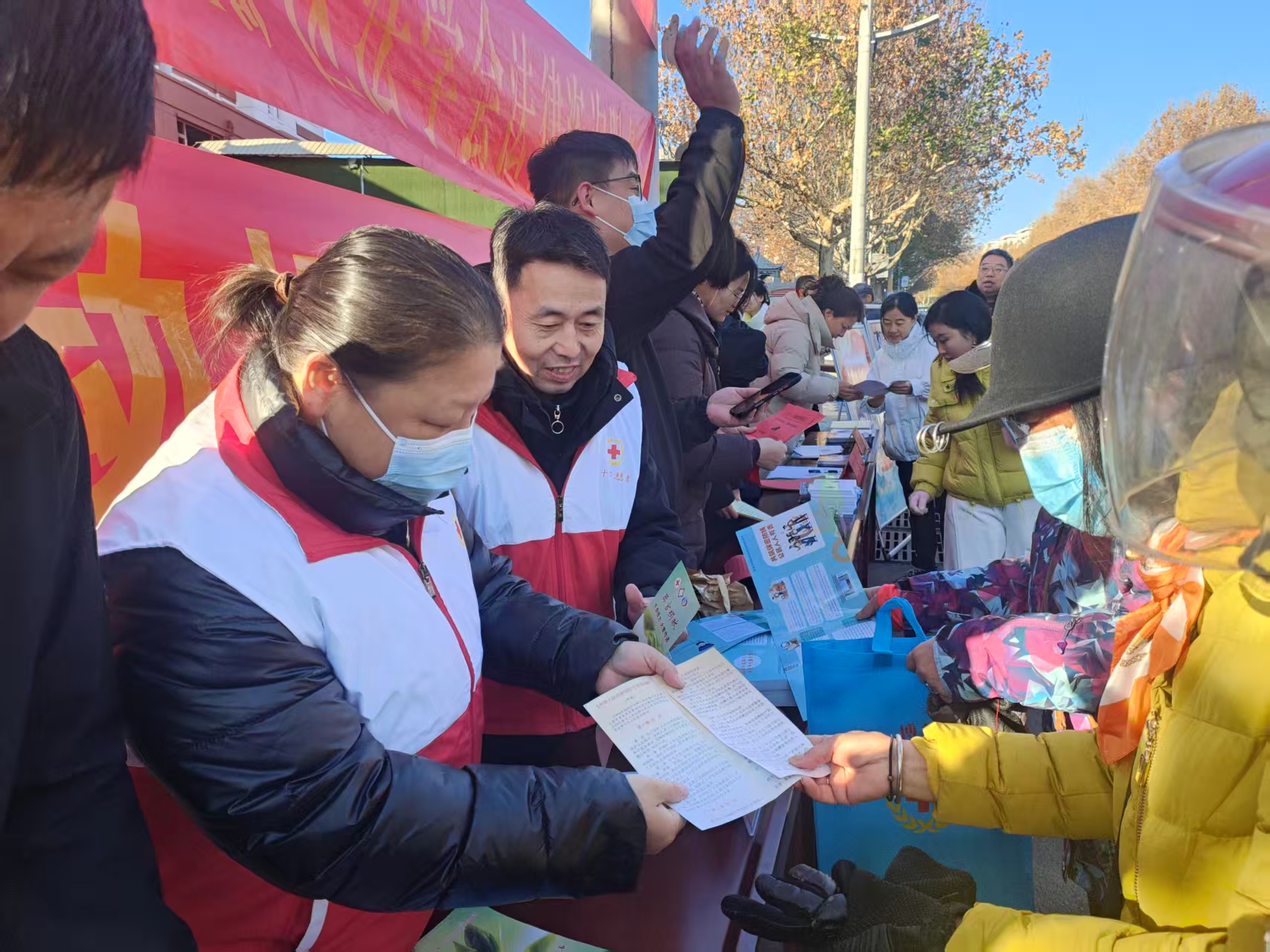 活动现场,红十字会志愿者向社会群众广泛宣传宪法及《中华人民共和国红十字会法》等相关法律法规,同时向群众宣传发放人体器官捐献、造血干细胞捐献、无偿献血等相关知识宣传册,让群众了解红十字会的性质、宗旨、职责以及相关权利义务,发放各种宣传册200余份。