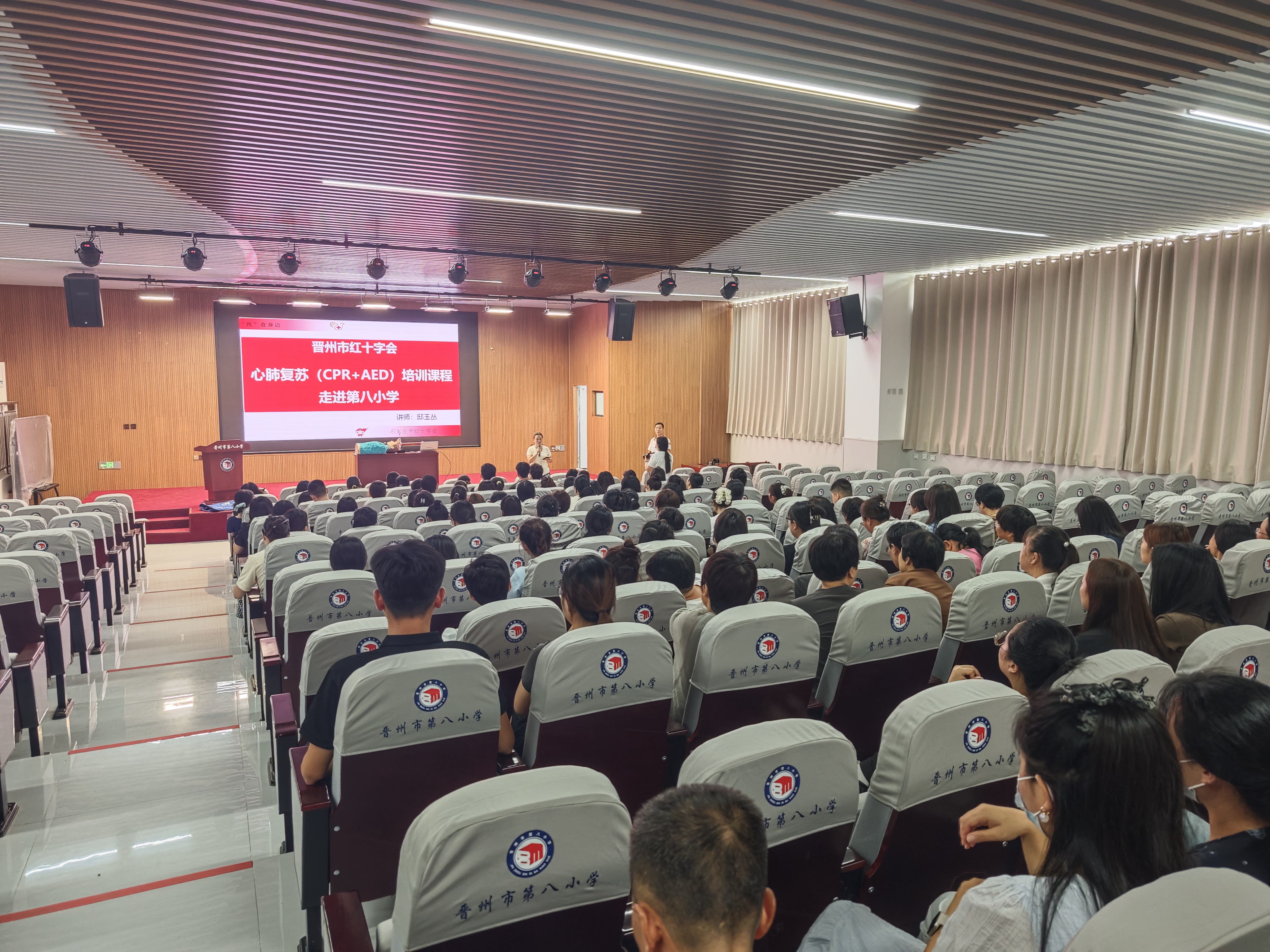 为扎实推进应急救护培训进校园工作,提升学校教职工应对突发事件的自救互救能力,助力平安校园建设,8月19日上午,晋州市红十字会邀请石家庄市红十字卫生救护培训中心讲师在第八小学开展心肺复苏技能培训活动,共有113名教师参加此次培训。