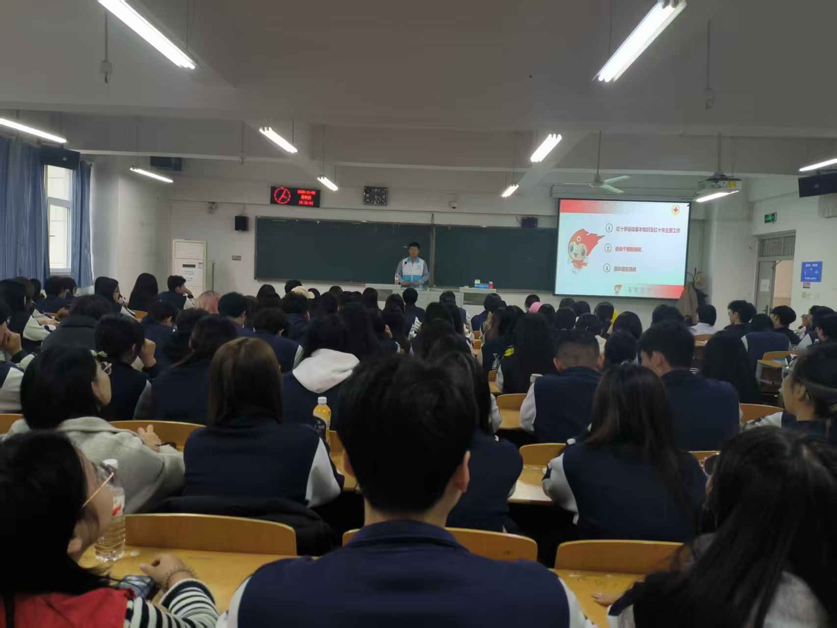 石家庄市红十字会开展“第十四届中华骨髓库河北高校行”三献知识进校园活动,2025年11月6日石家庄市红十字会志愿者王新华在河北师范大学汇华学院进行“三献”知识宣讲。